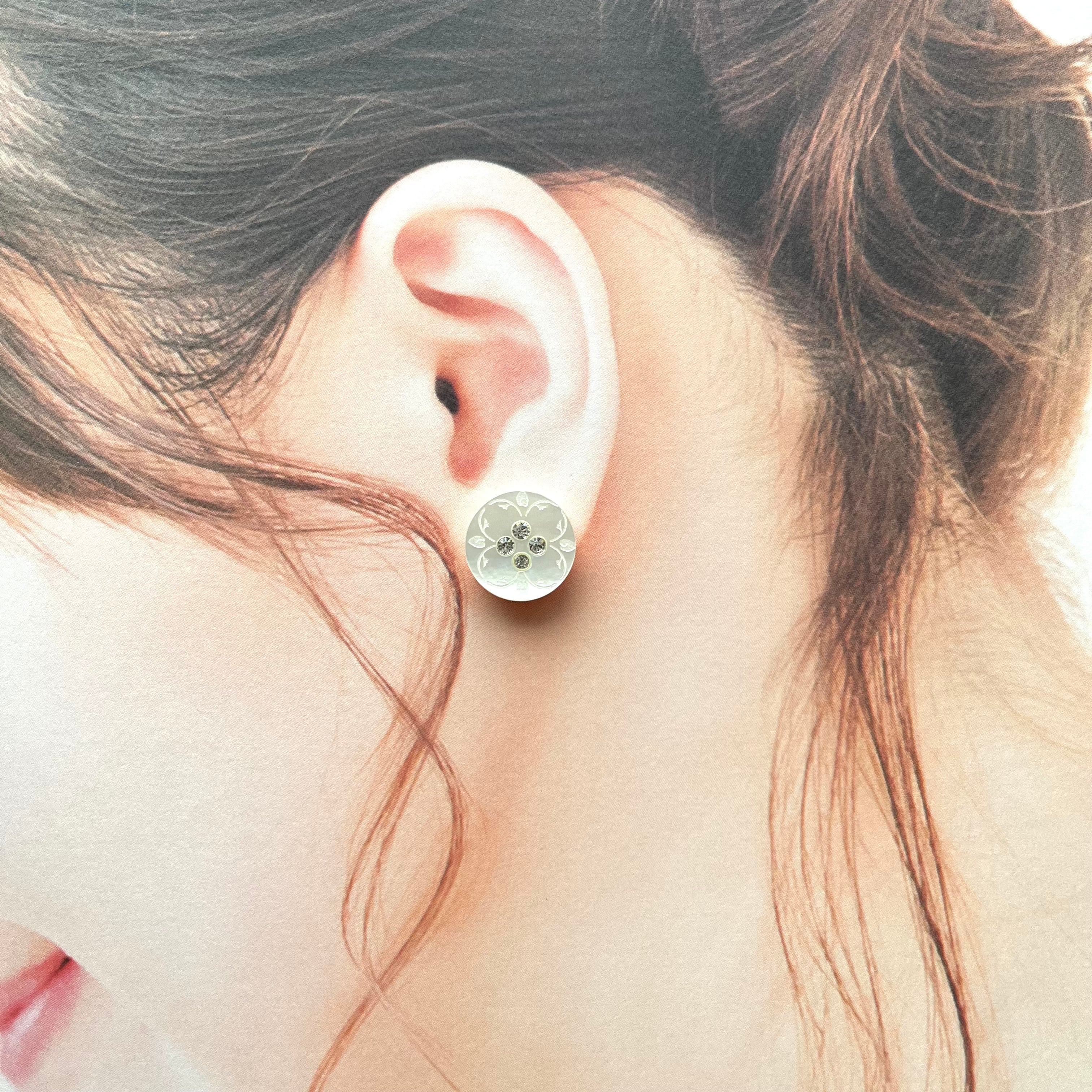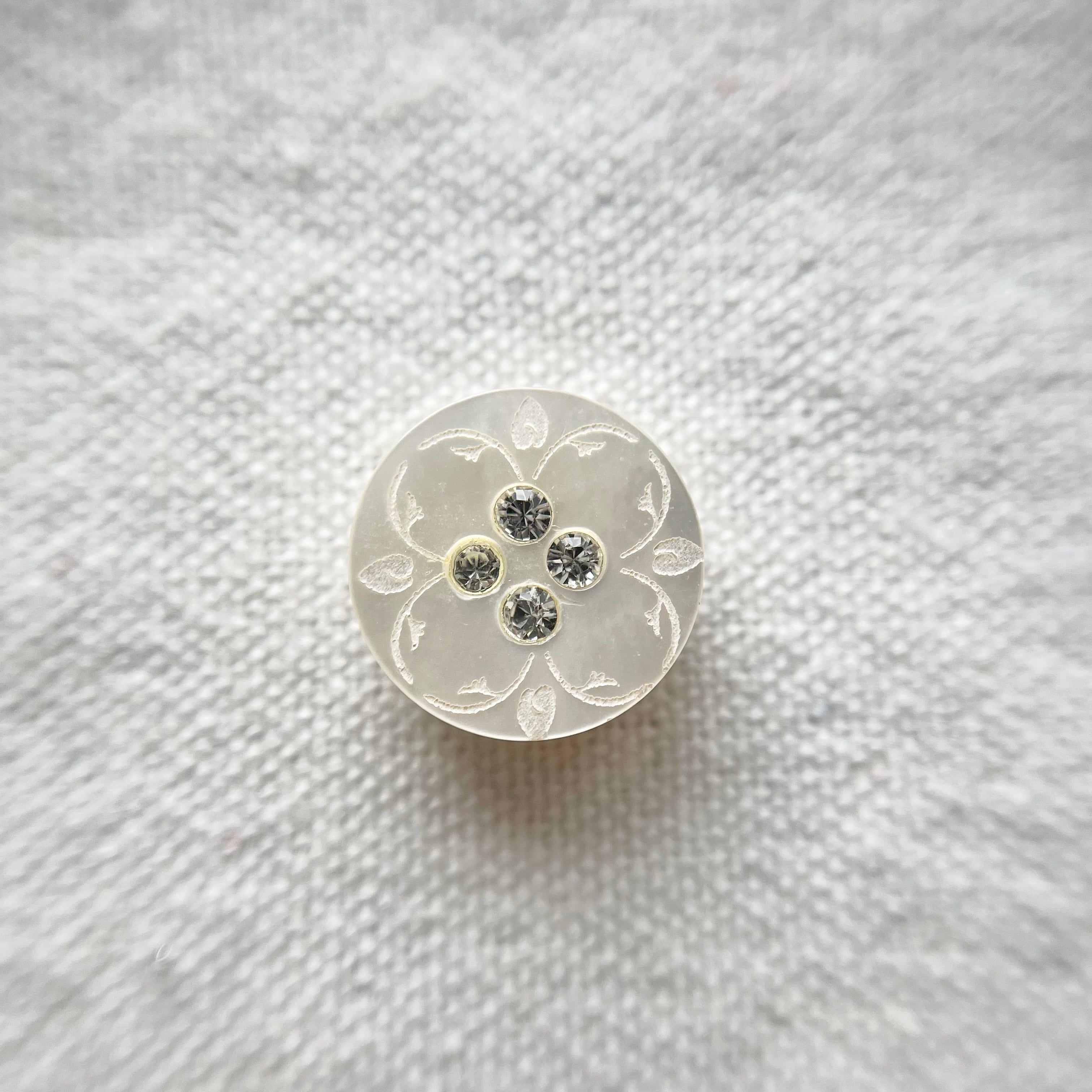 4粒ラインストーン×白蝶貝刻印フラワー 15㎜
