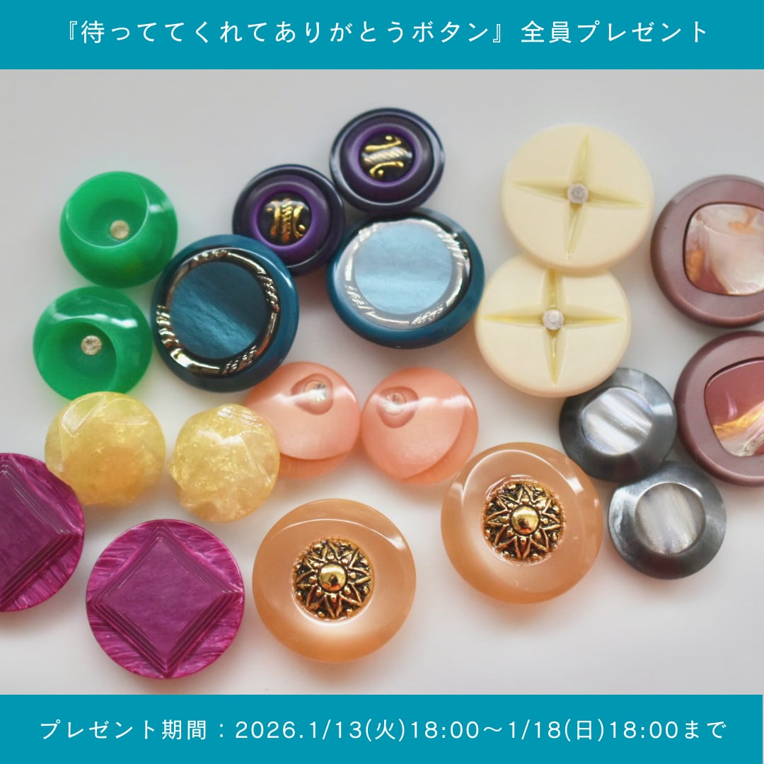 当店で扱うヴィンテージボタンは製造から30年以上のものになります。未使用品ではありますが、経年劣化に伴う小傷や欠け、色落ち等がございますことをご了承下さい。