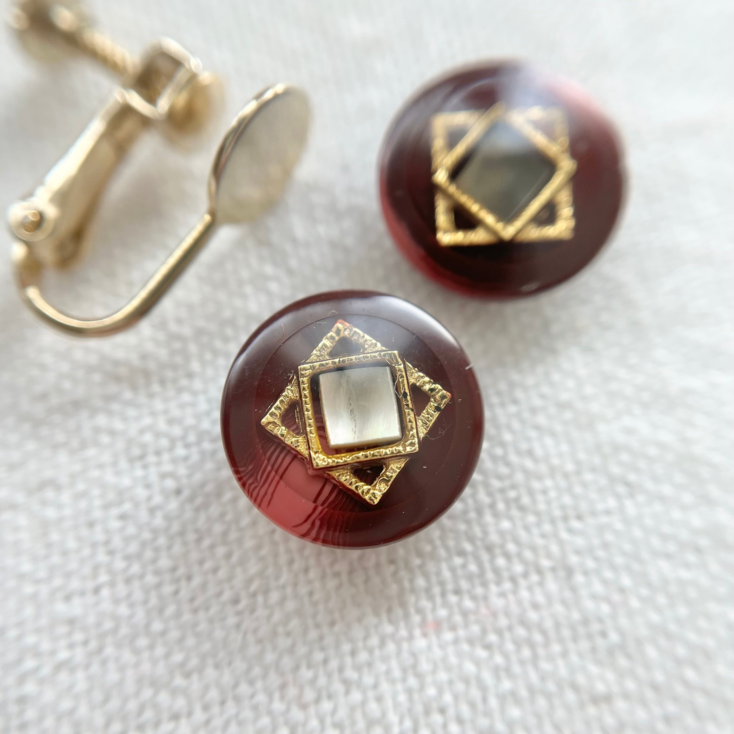 スクエア黒蝶貝×ボルドーマーブル 13㎜