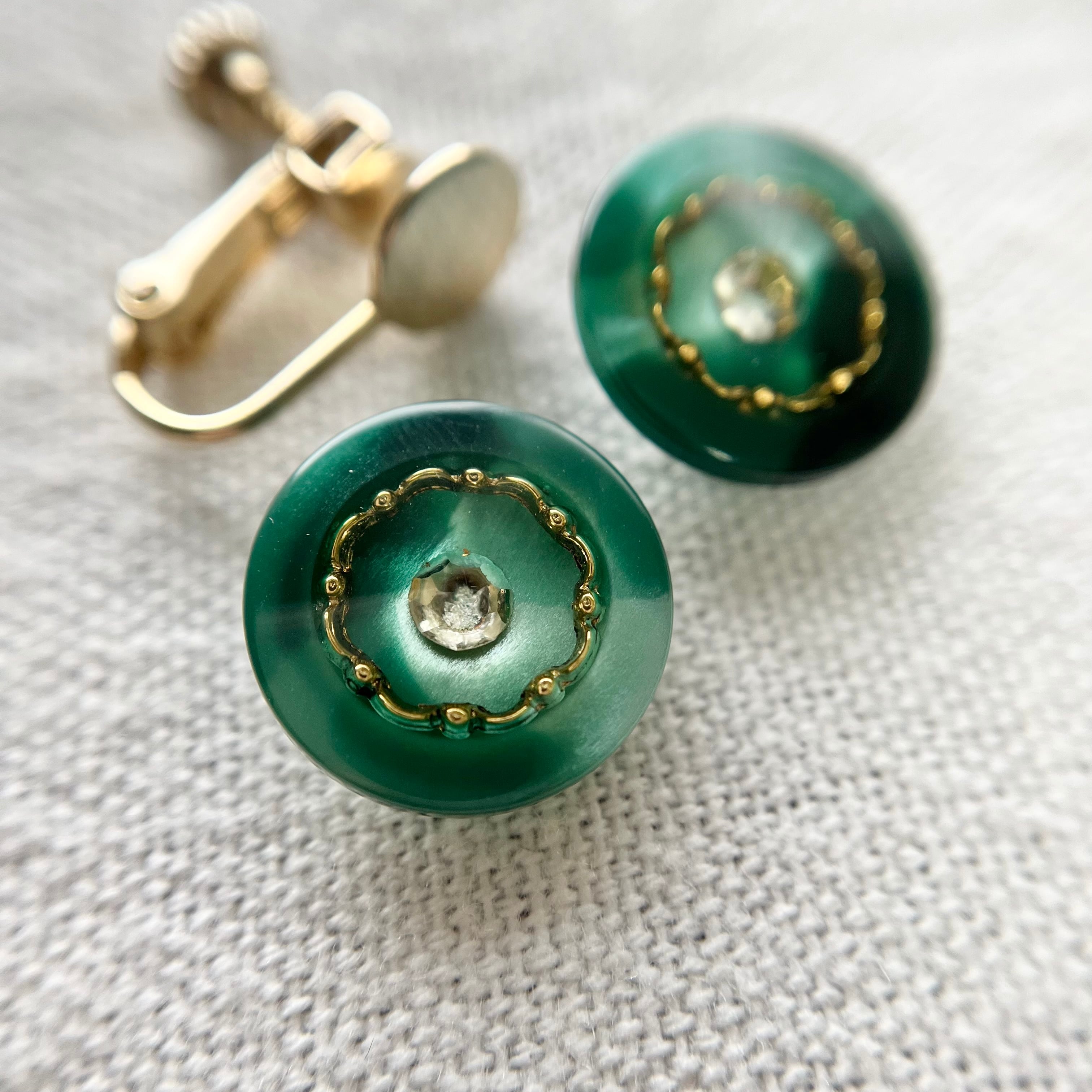 グリーン 1粒ラインストーンフラワー 15mm