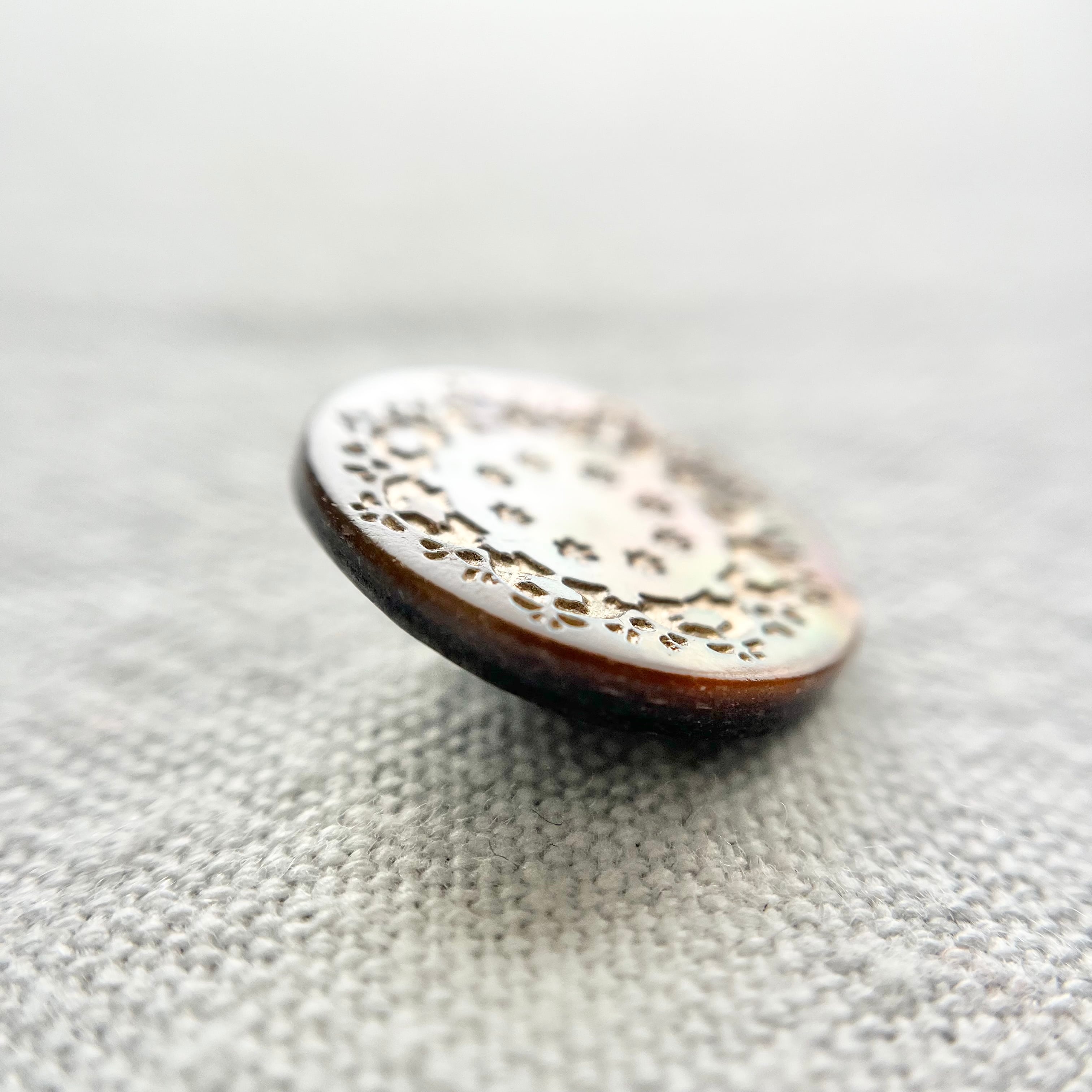 当店で扱うヴィンテージボタンは製造から30年以上のものになります。未使用品ではありますが、経年劣化に伴う小傷や欠け、色落ち等がございますことをご了承下さい。
