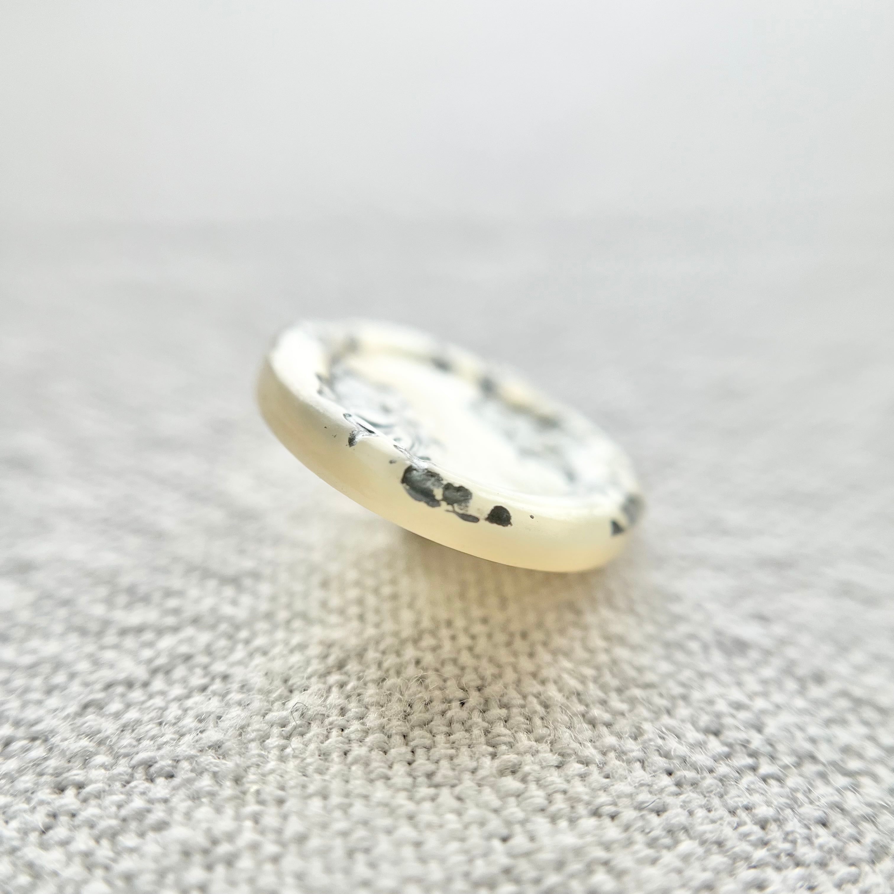 当店で扱うヴィンテージボタンは製造から30年以上のものになります。未使用品ではありますが、経年劣化に伴う小傷や欠け、色落ち等がございますことをご了承下さい。