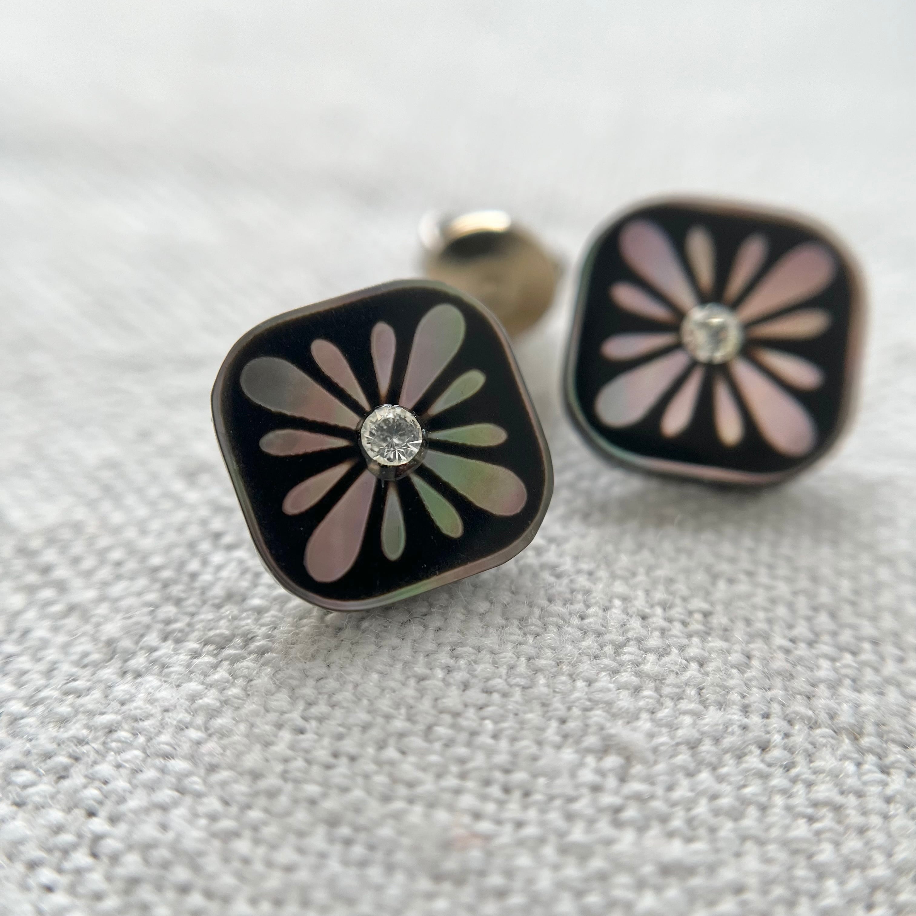 ◯素材:黒蝶貝・ラインストーン(裏足プラスチック)