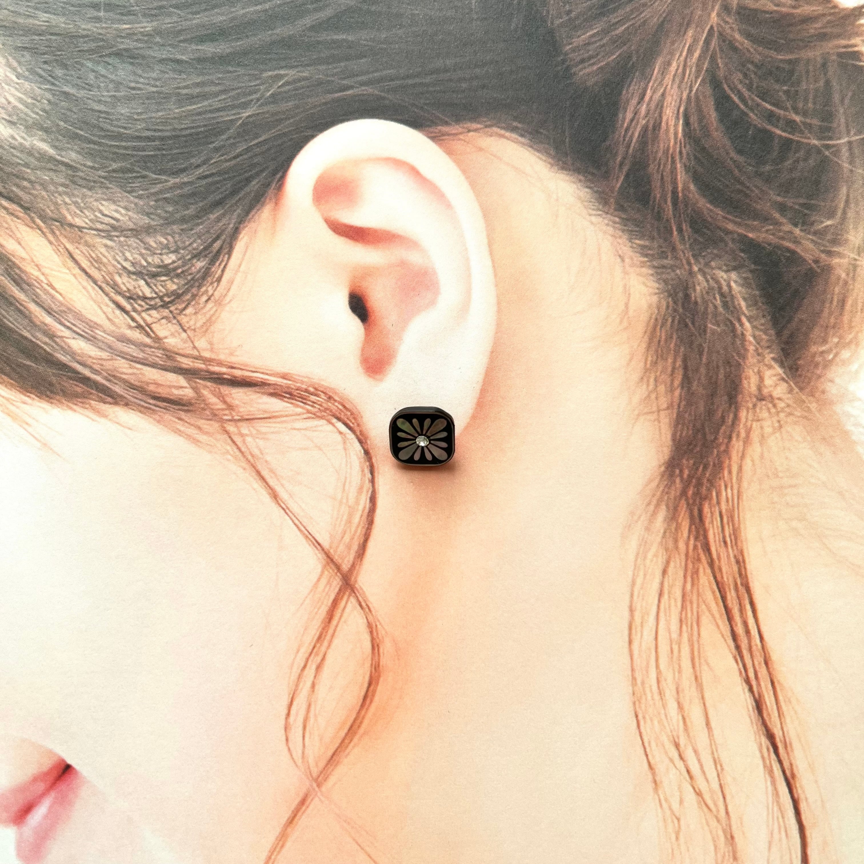 スクエア パールブラックフラワー 12.5mm