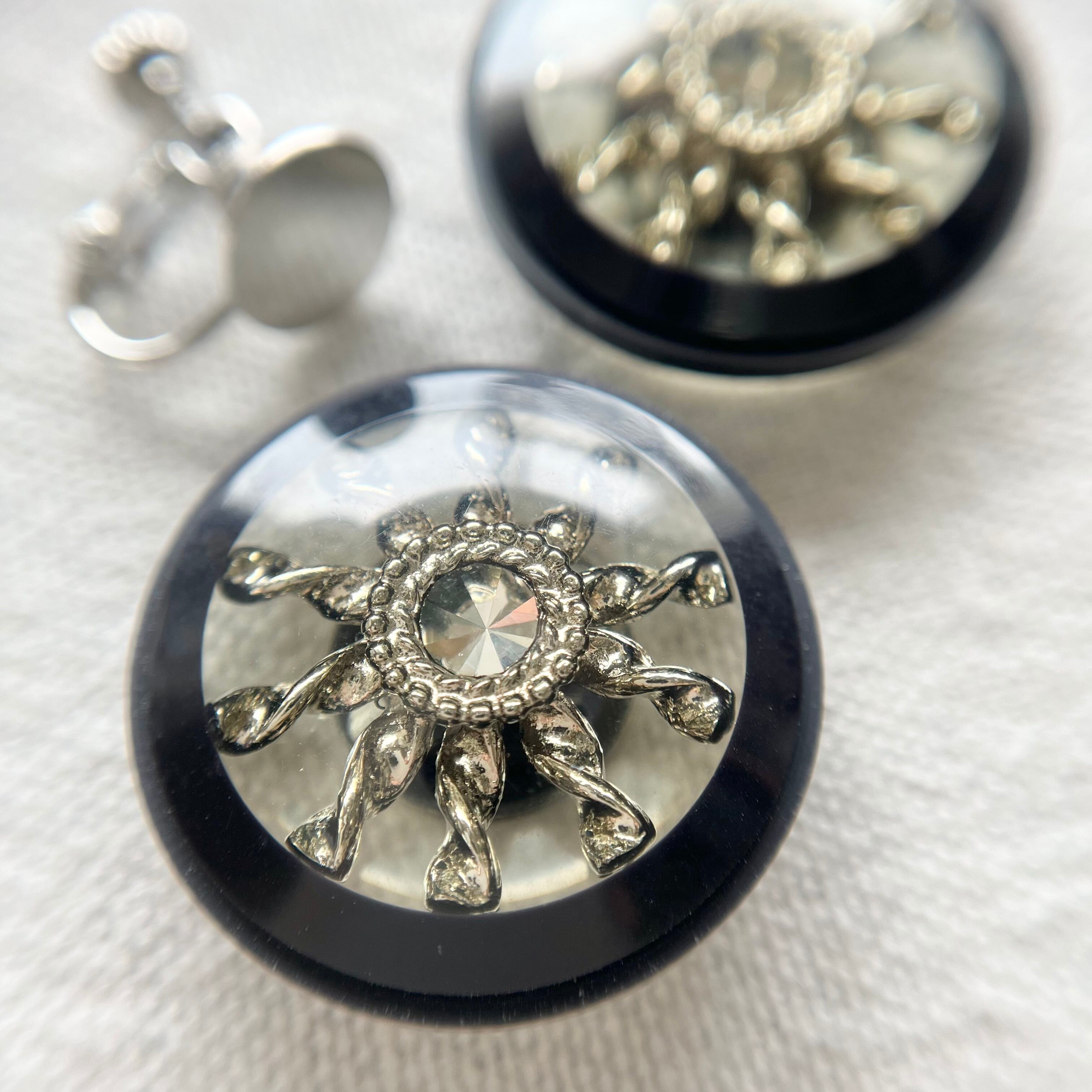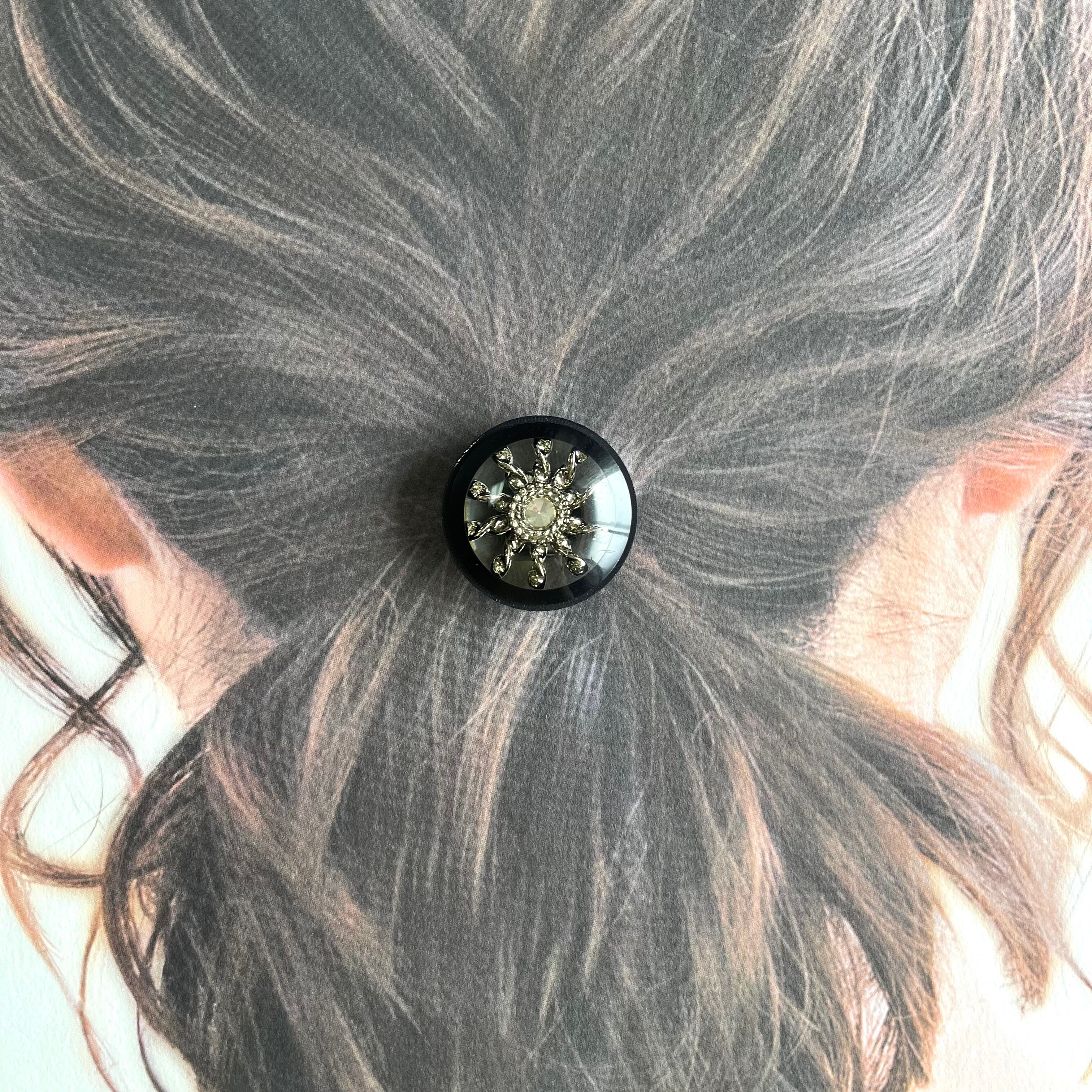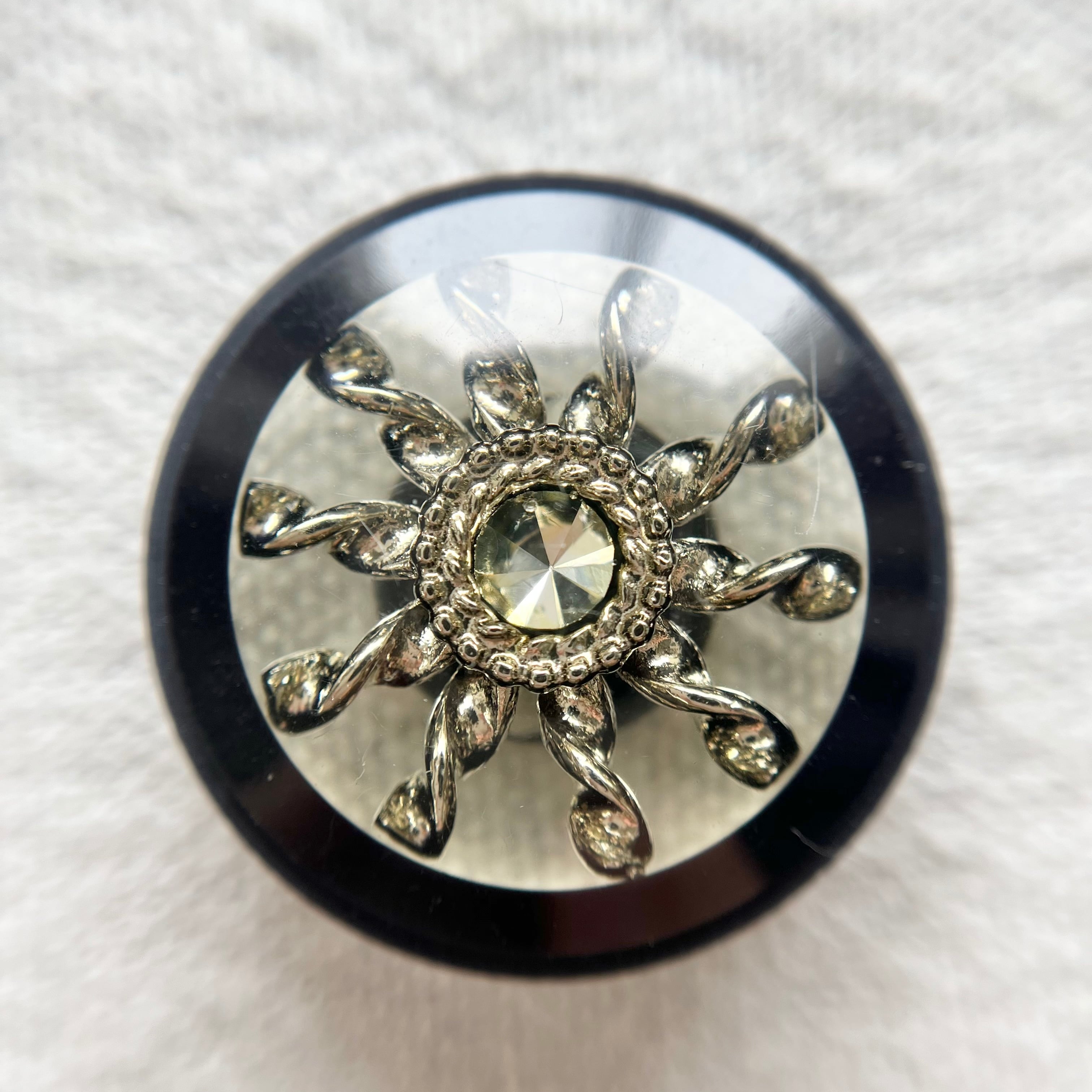 1粒ラインストーンシルバーフラワー×ネイビー 28㎜