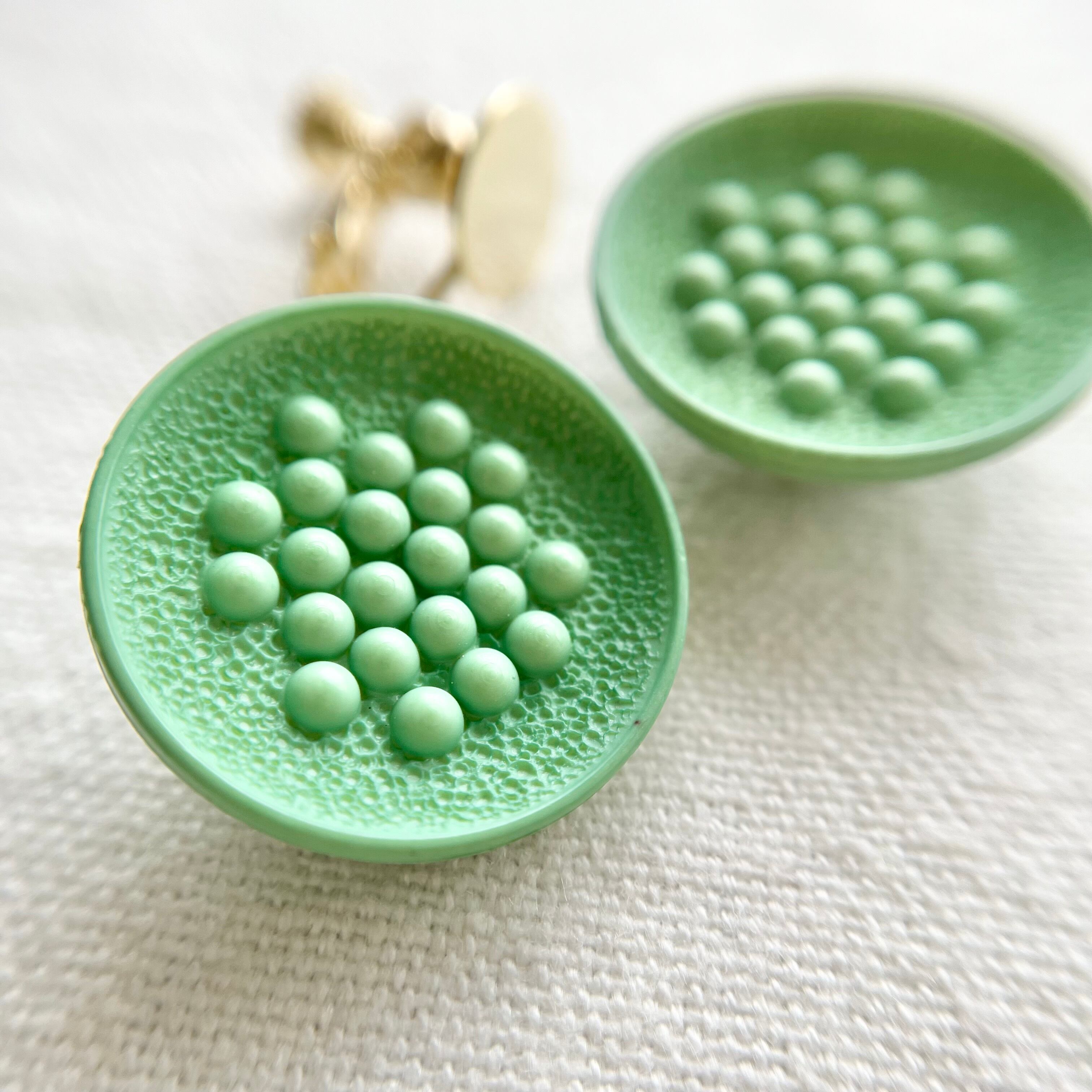 当店で扱うヴィンテージボタンは製造から30年以上のものになります。未使用品ではありますが、経年劣化に伴う小傷や欠け、色落ち等がございますことをご了承下さい。